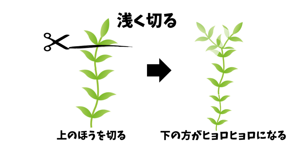 そのため、何回かトリミングを繰り返していくと、枝分かれをしていくので、上部は水草が茂っているように見えるのです。