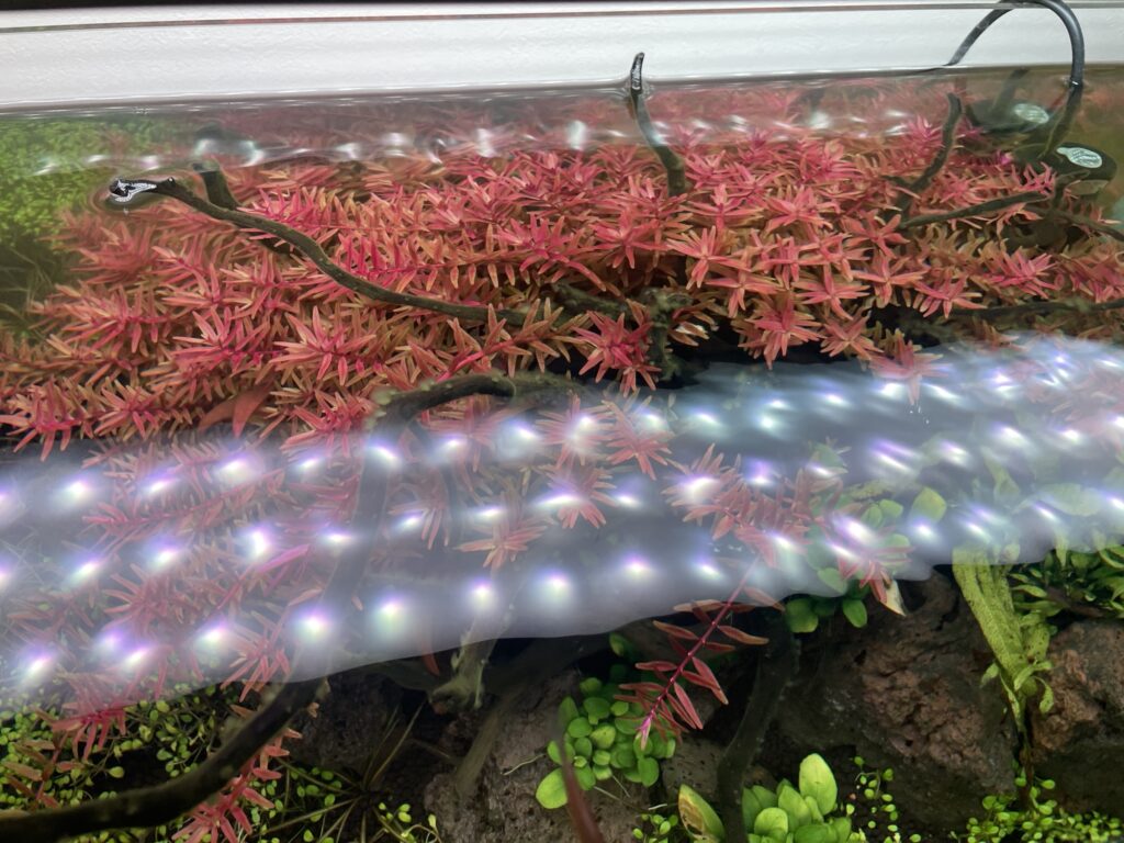 また、高光量のライトを使用しないと赤系水草がきれいな赤色になりません。