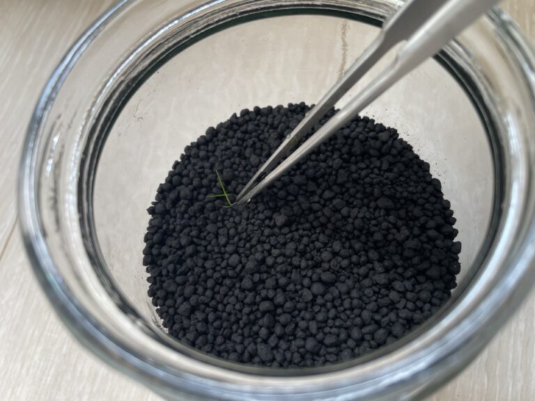 手順は同じように、余ったソイルなどを入れ湿らせてから水草を植えます。