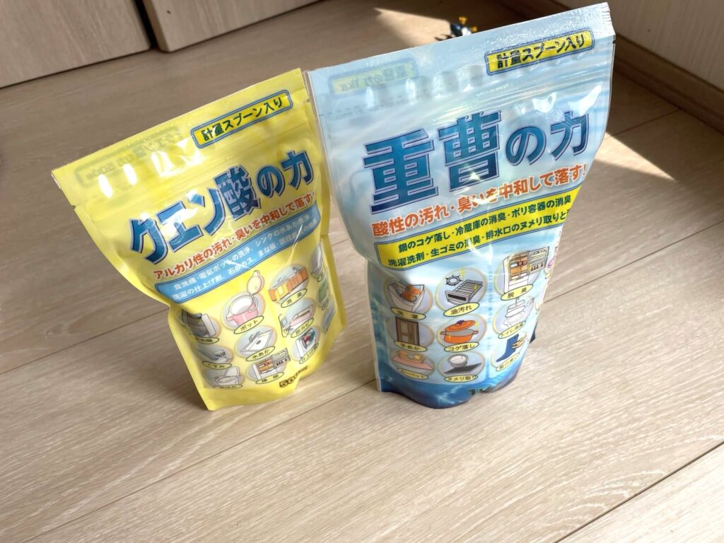 材料は「クエン酸」と「重曹」だけなので、100均でも簡単に購入することができます。