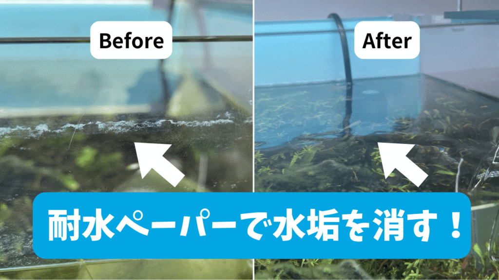 この記事はこんな方のための記事です。 水槽の白い水垢が固まっていてとれない 水垢をきれいに取る方法を知りたい 耐水ペーパーでガラス水槽に傷が付かないかを知りたい 長い間水槽を管理していると、炭酸カルシウムが固まってしまい水槽が白く汚れてしま... -