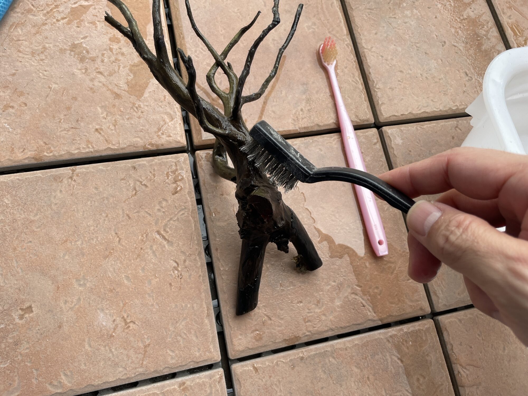 流木の細い部分などは折れてしまう可能性があるので、取りやすいところだけでも擦るとよいと思います。