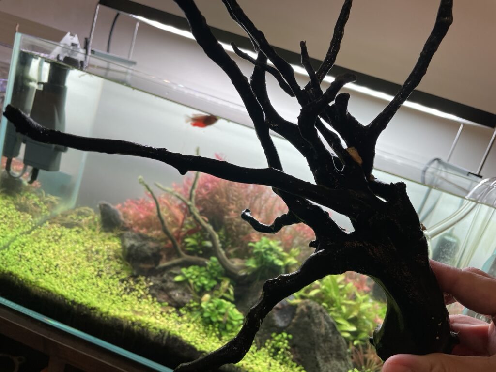 また、流木では浸みこんでしまい水槽内に持ち込んでしまう恐れがあるためです。