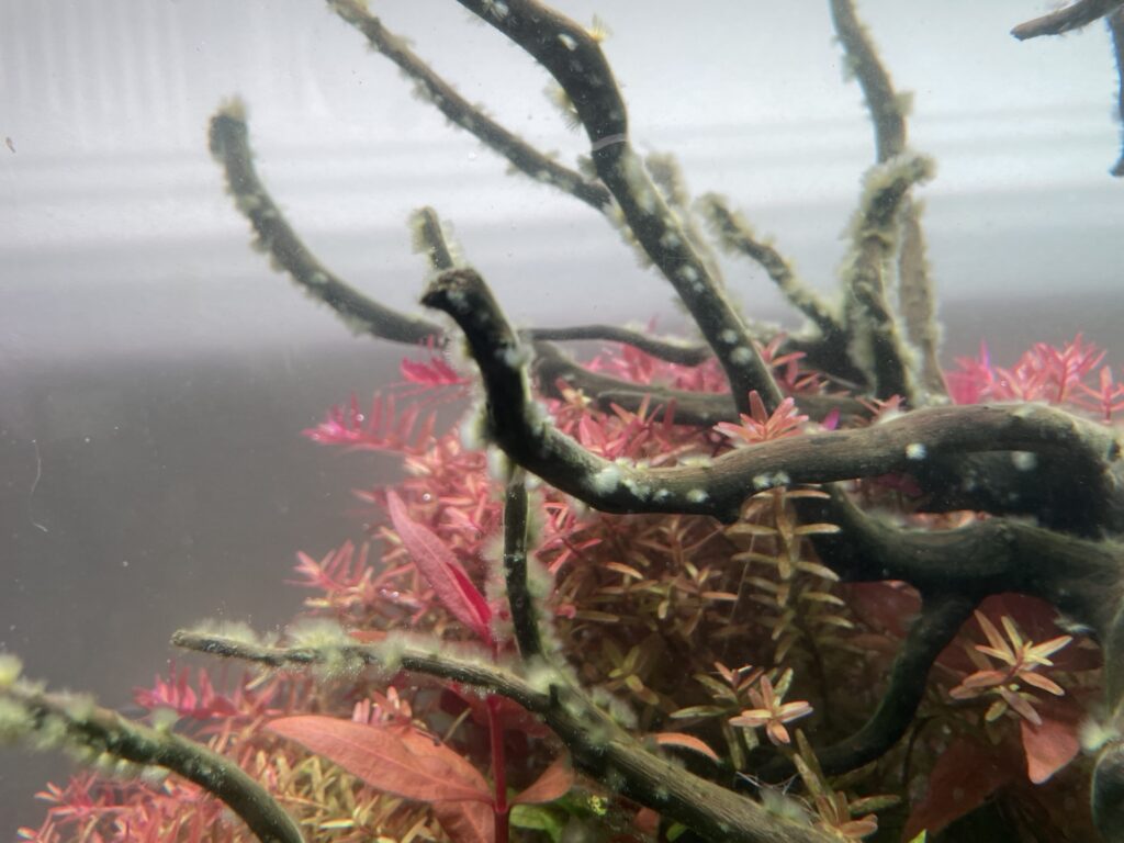 そのままでは黒ひげゴケを食べてくれませんが、弱って柔らかくなったものはヤマトヌマエビが食べてくれます。