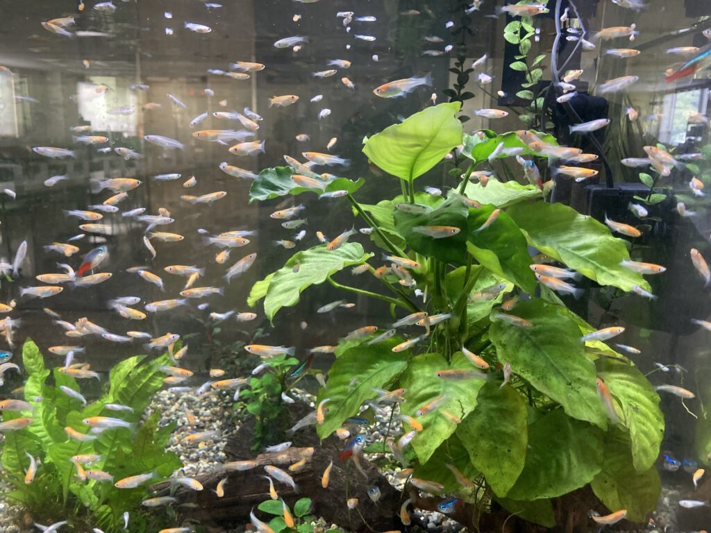 大きい水槽では、水槽の端でエアレーションを行えば、メダカが疲れてしまうということは少なくなります。