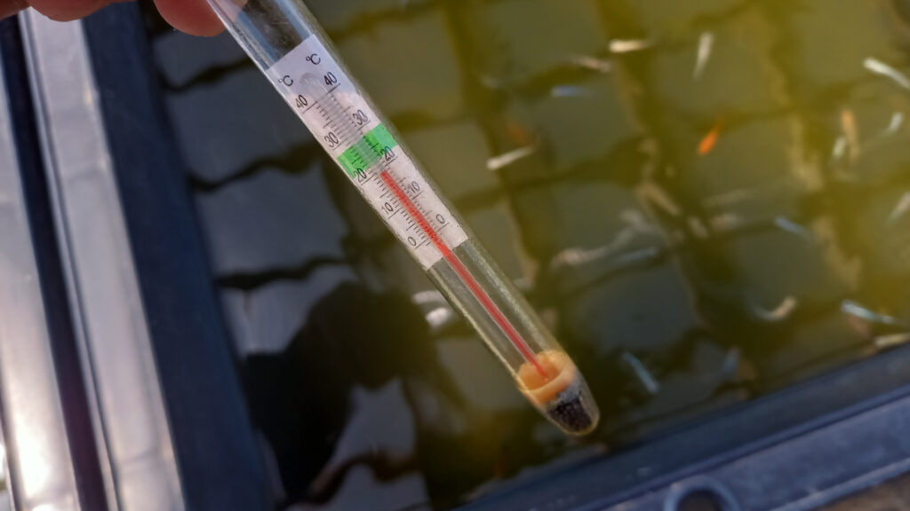 水温が上がると、水中に溶け込む酸素の量は少なくなってしまいます。