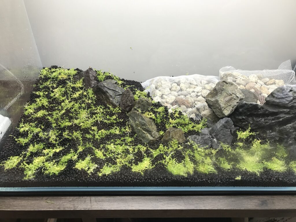 しかし、水を入れた後長時間ライトを点けているとコケだらけになってしまいます。