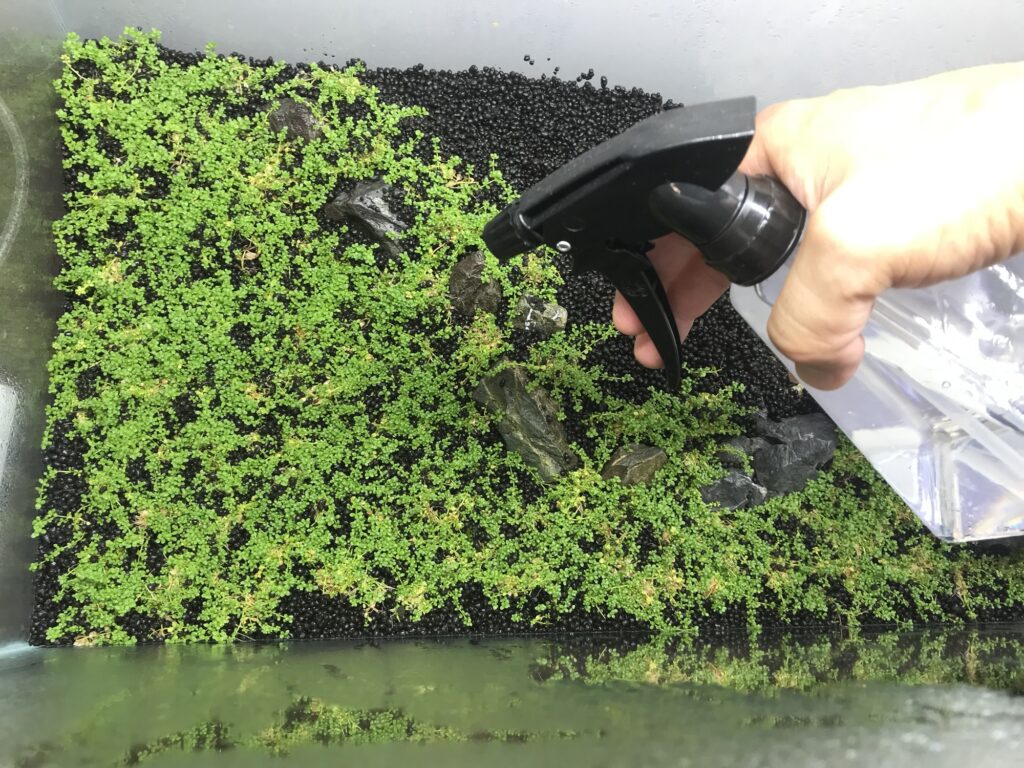 水草がソイルの表面を覆うくらいまで、毎日霧吹きを繰り返していきます。