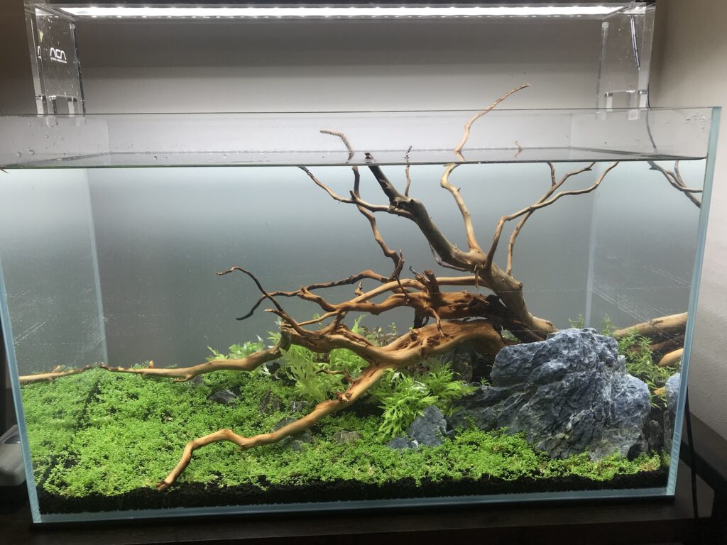 水槽一面が緑の絨毯になるレイアウトはあこがれます。
