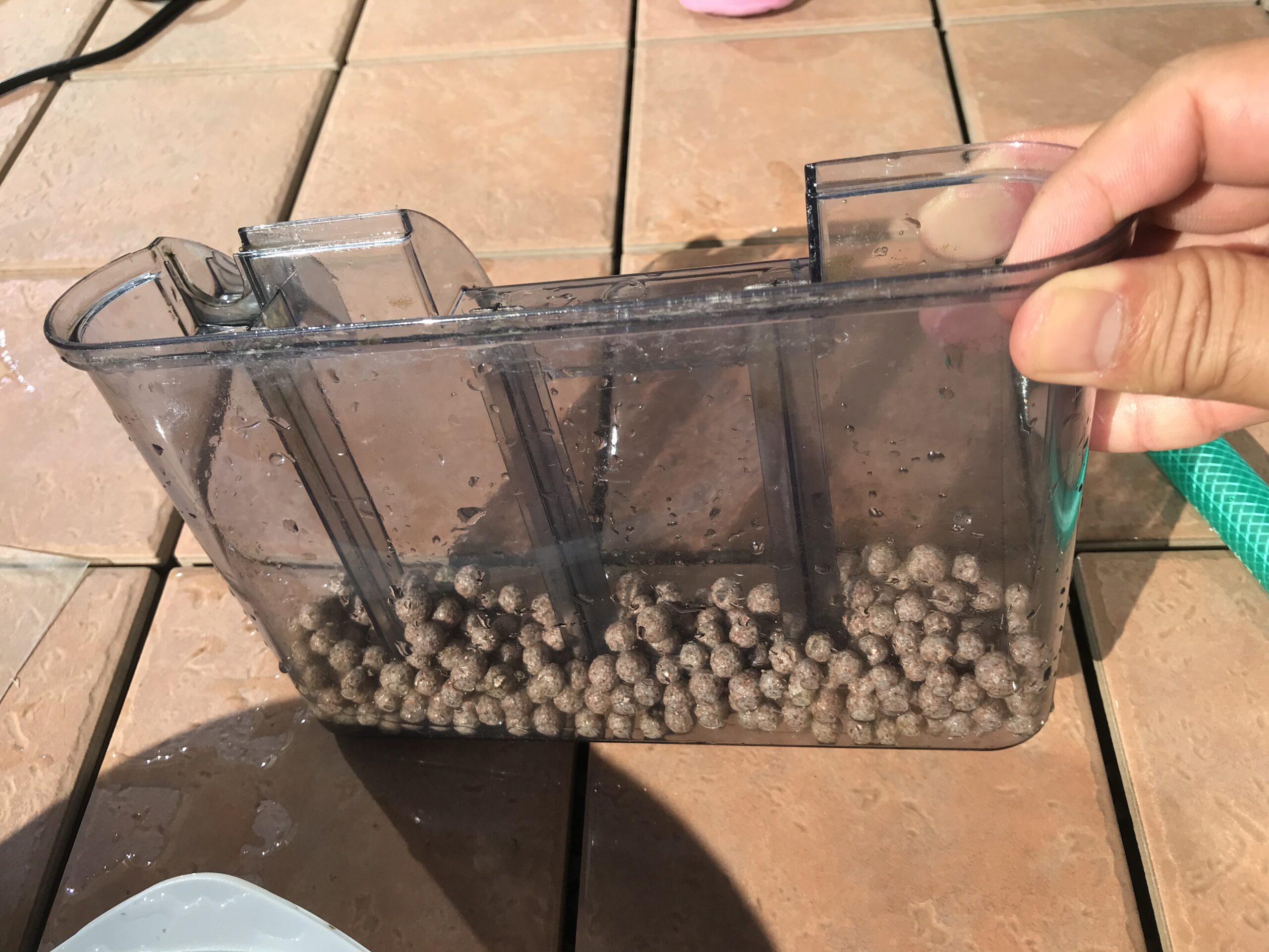 物理ろ材(ゴミをとる)をまったく入れていないので、ゴミは少しずつ溜まります。