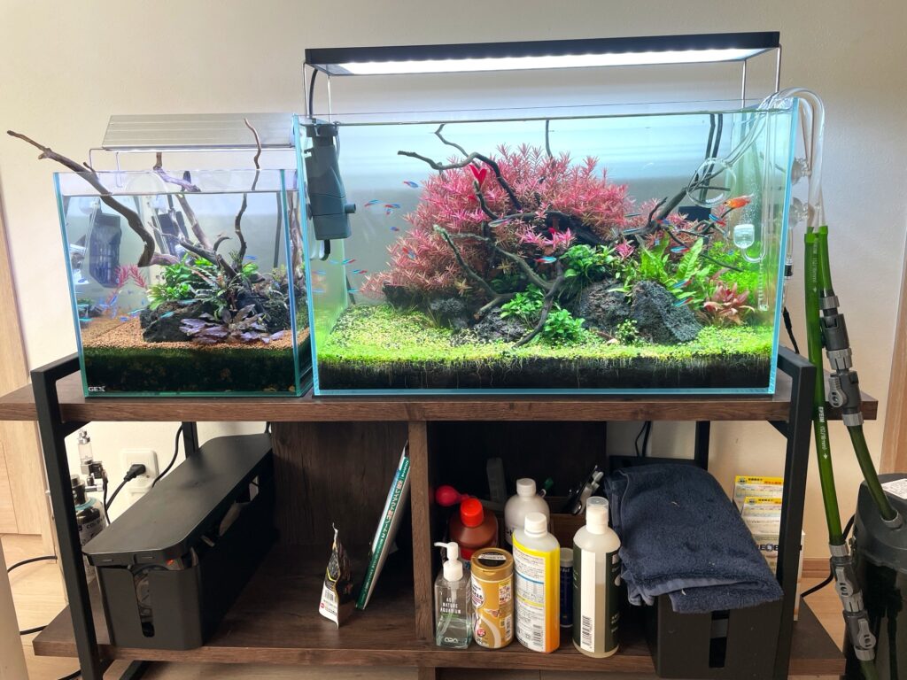 現在は90㎝水槽台に60㎝と30㎝の2つを乗せています。